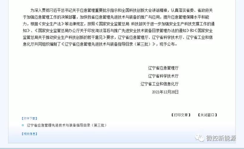 中國儲(chǔ)能網(wǎng)訊:2021年12月28日,為深入貫徹習(xí)近平總書記關(guān)于應(yīng)急管理重要批示指示和全國科技創(chuàng)新大會(huì)講話精神,認(rèn)真落實(shí)省委、省政府關(guān)于加強(qiáng)應(yīng)急管理工作的決策部署,加快我省應(yīng)急管理先進(jìn)技術(shù)與裝備的推廣與應(yīng)用,提升應(yīng)急管理保障水平和能力,根據(jù)《安全生產(chǎn)法》等法律規(guī)定,按照《國家安全監(jiān)管總局科技部關(guān)于進(jìn)一步加強(qiáng)安全生產(chǎn)科技支撐工作的通知》、《國家安全監(jiān)管總局辦公廳關(guān)于印發(fā)淘汰落后與推廣先進(jìn)安全技術(shù)裝備目錄管理辦法的通知》和《國家安全監(jiān)管總局關(guān)于推動(dòng)安全生產(chǎn)科技創(chuàng)新的若干意見》要求,遼寧省應(yīng)急管理廳、遼寧省科學(xué)技術(shù)廳、遼寧省工業(yè)和信息化廳共同組織編制了《遼寧省應(yīng)急管理先進(jìn)技術(shù)與裝備指導(dǎo)目錄(第三批)》。