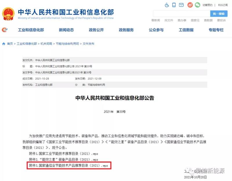 中國(guó)儲(chǔ)能網(wǎng)訊:2021年12月09日,中華人民共和國(guó)工業(yè)和信息化部發(fā)布公告,為加快推廣應(yīng)用先進(jìn)適用節(jié)能技術(shù)、裝備和產(chǎn)品,推動(dòng)工業(yè)和信息化領(lǐng)域節(jié)能和能效提升,助力實(shí)現(xiàn)碳達(dá)峰、碳中和目標(biāo),我部組織編制了《國(guó)家工業(yè)節(jié)能技術(shù)推薦目錄(2021)》《“能效之星”裝備產(chǎn)品目錄(2021)》《國(guó)家通信業(yè)節(jié)能技術(shù)產(chǎn)品推薦目錄(2021)》。