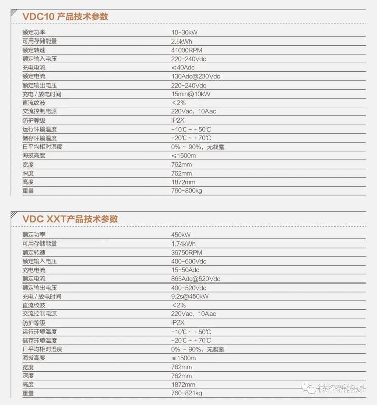 圖3 - 微控磁懸浮飛輪儲(chǔ)能設(shè)備VDC系列產(chǎn)品技術(shù)參數(shù)