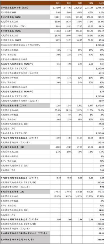 圖:2021-2025飛輪儲能電力調(diào)頻市場空間預測(億元)