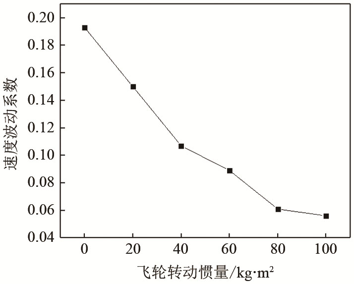 圖10 電機(jī)速度波動(dòng)系數(shù)隨飛輪轉(zhuǎn)動(dòng)慣量變化曲線