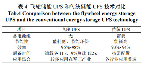 電力設(shè)備的體積、能耗以及確保關(guān)鍵任務(wù)應(yīng)用的最高電能質(zhì)量和可靠性是數(shù)據(jù)中心建設(shè)所面臨的挑戰(zhàn),飛輪儲能可以完美地解決這一難題。飛輪儲能 UPS 和傳統(tǒng)儲能 UPS 技術(shù)對比如表 4 所示。