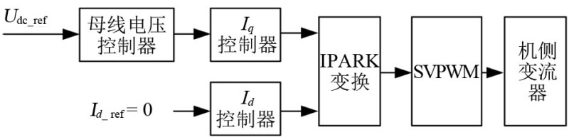 在機側控制中,設置母線電壓控制為外環(huán),內環(huán)是d-q軸電流控制,同樣采用id=0的控制方式。在網(wǎng)側輸出正弦電壓控制中,不太適合采用PI控制方法,原因在于:若直接在a-b-c坐標系下進行跟蹤控制,則會存在跟蹤靜差;若將電壓變換到d-q坐標系下進行控制,若負載出現(xiàn)三相不平衡,則會產(chǎn)生負序電壓分量,此時還需要將正負序分量進行解耦并做單獨控制,計算比較復雜。
