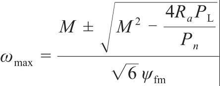 電機升速時,最高轉速設定條件有兩個:一是電機端電壓等于機側變流器最大線性調制輸出的線電壓,二是電機輸出有功功率滿足負載有功需求。