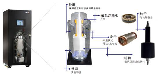 VDC飛輪儲能產(chǎn)品的核心技術(shù)包括五軸主動磁懸浮軸承及控制技術(shù)、高性能合金材料技術(shù)、高速永磁電動機/發(fā)電機技術(shù)和大功率電力電子變換技術(shù),其主要組成部分如下圖所示: