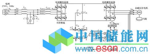 采用基于背靠背變流器的飛輪儲(chǔ)能系統(tǒng)來平抑風(fēng)力發(fā)電輸出功率的波動(dòng)并進(jìn)行了仿真研究,其直流母線電壓由電網(wǎng)側(cè)變流器控制,并網(wǎng)功率由電機(jī)側(cè)與電網(wǎng)側(cè)變流器共同控制,控制較為復(fù)雜。