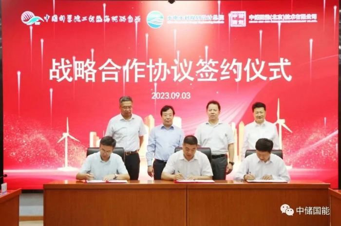 中國儲能網(wǎng)訊:2023年9月3日下午,中儲國能(北京)技術(shù)有限公司(簡稱“中儲國能”)與水電水利規(guī)劃設(shè)計(jì)總院(簡稱“水電總院”)、中國科學(xué)院工程熱物理研究所在北京舉行戰(zhàn)略合作協(xié)議簽約儀式,并圍繞未來深入合作進(jìn)行座談交流。