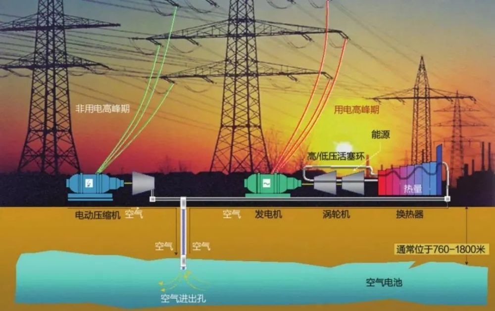 當(dāng)發(fā)電廠發(fā)的電用不了的時(shí)候,就可以通過壓縮機(jī)把電能傳遞給空氣電池,讓壓縮機(jī)不斷向地下輸送空氣,給地下的空氣加壓,這樣,發(fā)電廠多余的電能就不會(huì)浪費(fèi)掉,儲(chǔ)存到空氣電池中。當(dāng)用電瘋狂的時(shí)候,把壓縮空氣放出來,氣流急速的沖擊力就可以帶動(dòng)發(fā)電機(jī)發(fā)電,送往需要的用戶。
