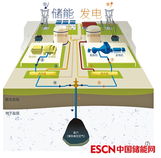 “在用電低谷時把空氣壓縮,存儲在地下鹽穴,完成一次充電的周期為8小時;在用電高峰時,釋放高壓空氣,每小時能發(fā)電6萬千瓦時,可以連續(xù)發(fā)電5個小時,發(fā)電量可達30萬千瓦時。”韓月峰介紹。
