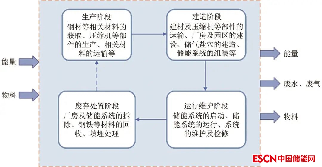圖3 壓縮空氣儲能系統(tǒng)生命周期的系統(tǒng)邊界