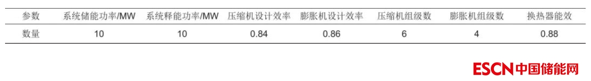 表1 先進CAES系統(tǒng)主要參數(shù)