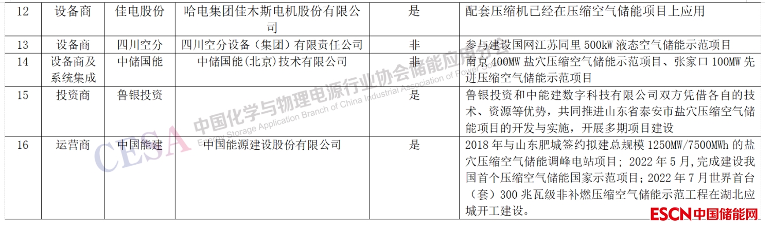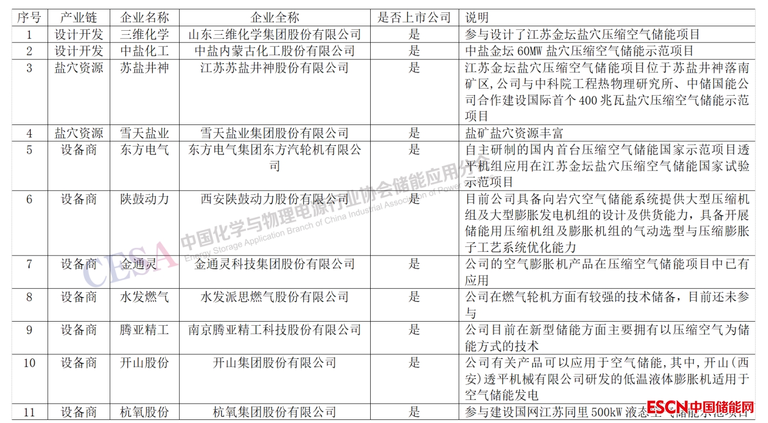 表3 2022國內(nèi)壓縮空氣儲能產(chǎn)業(yè)鏈重點(diǎn)企業(yè)一覽表