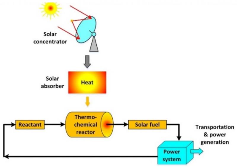 例如,太陽能熱化學儲能系統(tǒng)針對典型熱化學循環(huán)過程進行循環(huán)的切斷,實現了能量的時間平移,在能多時,利用熱化學原理,吸收太陽能并將其轉化為穩(wěn)定合成氣的化學能進行儲存,能少時,通過儲存合成氣的氧化 / 分解等反應釋放其化學能。
