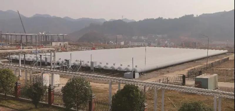 相比儲(chǔ)罐儲(chǔ)氣,直徑較小的壓力管道儲(chǔ)氣便于集成管網(wǎng)形成規(guī)模,安裝布置更加靈活,目前在我國貴州10 MW先進(jìn)壓縮空氣儲(chǔ)能示范項(xiàng)目中得到應(yīng)用,如圖5所示。相比之下,管道儲(chǔ)氣方案在天然氣領(lǐng)域使用更為廣泛,其設(shè)計(jì)壓力通常在10 MPa以上,并不斷向高壓力、大口徑、高級(jí)鋼的方向發(fā)展。