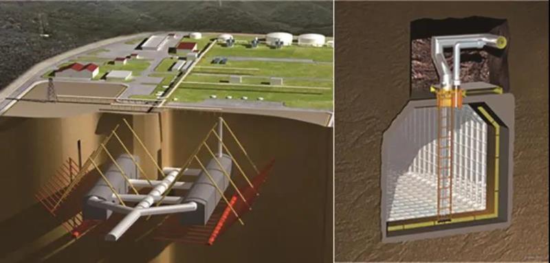 人造洞室減弱了對(duì)于特殊地質(zhì)地理?xiàng)l件的依賴,主要包括淺埋地下的人工內(nèi)襯洞穴儲(chǔ)氣裝置以及用于水下的混凝土人造儲(chǔ)氣室。