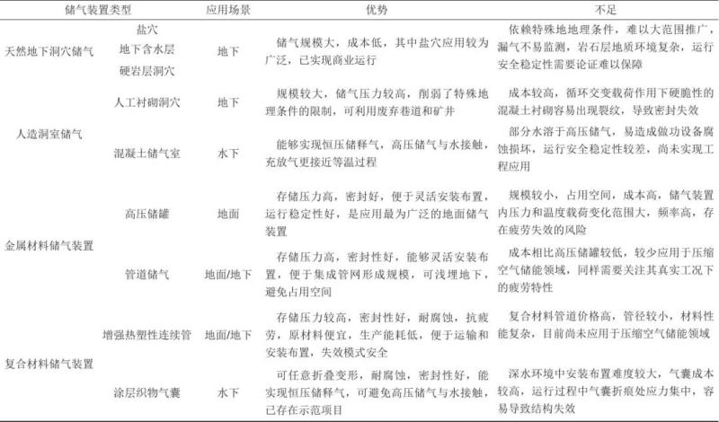 表1 儲(chǔ)氣裝置的應(yīng)用及特點(diǎn)