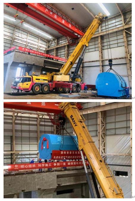 國(guó)際首套100MW先進(jìn)壓縮空氣儲(chǔ)能發(fā)電機(jī)定子順利吊裝就位