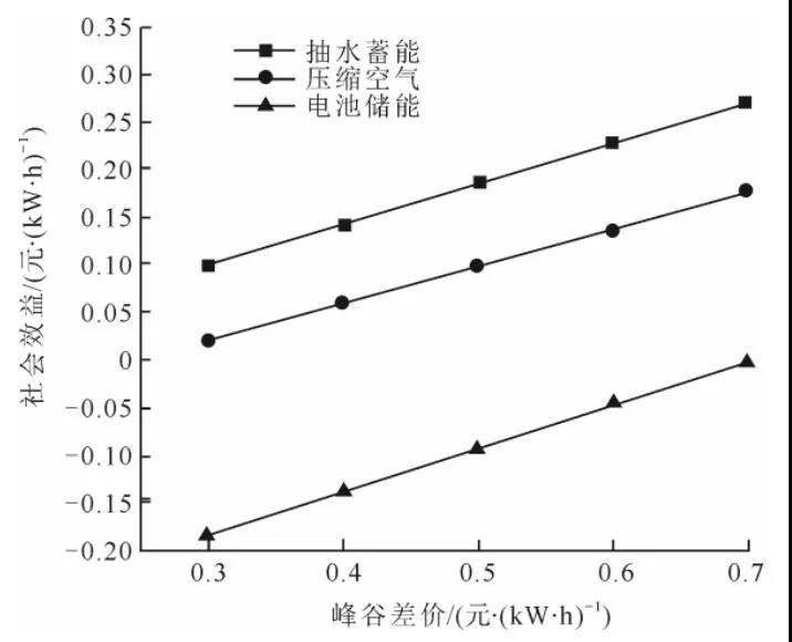 (最優(yōu)填谷比例下峰谷電價差對社會效益的影響)