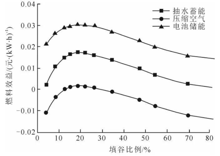 (最優(yōu)填谷比例下各項燃料效益比例)