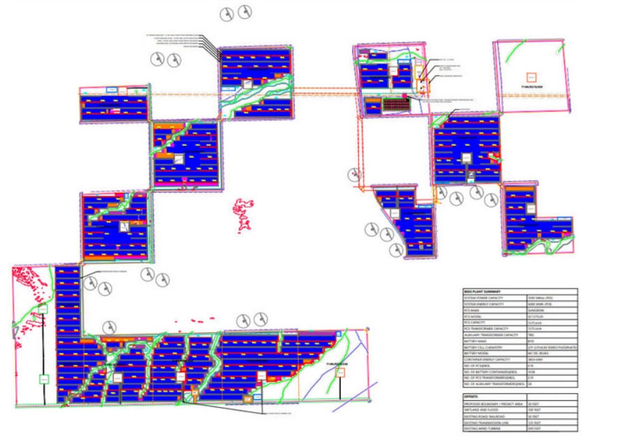 Stellar Renewable Power公司提交的規(guī)劃文件中Red Hills太陽能+儲能項目的現(xiàn)場圖紙
