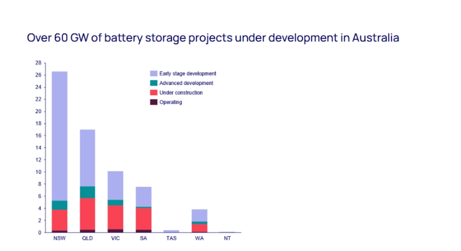 圖2澳大利亞正在開發(fā)的儲(chǔ)能項(xiàng)目的裝機(jī)容量達(dá)60GW