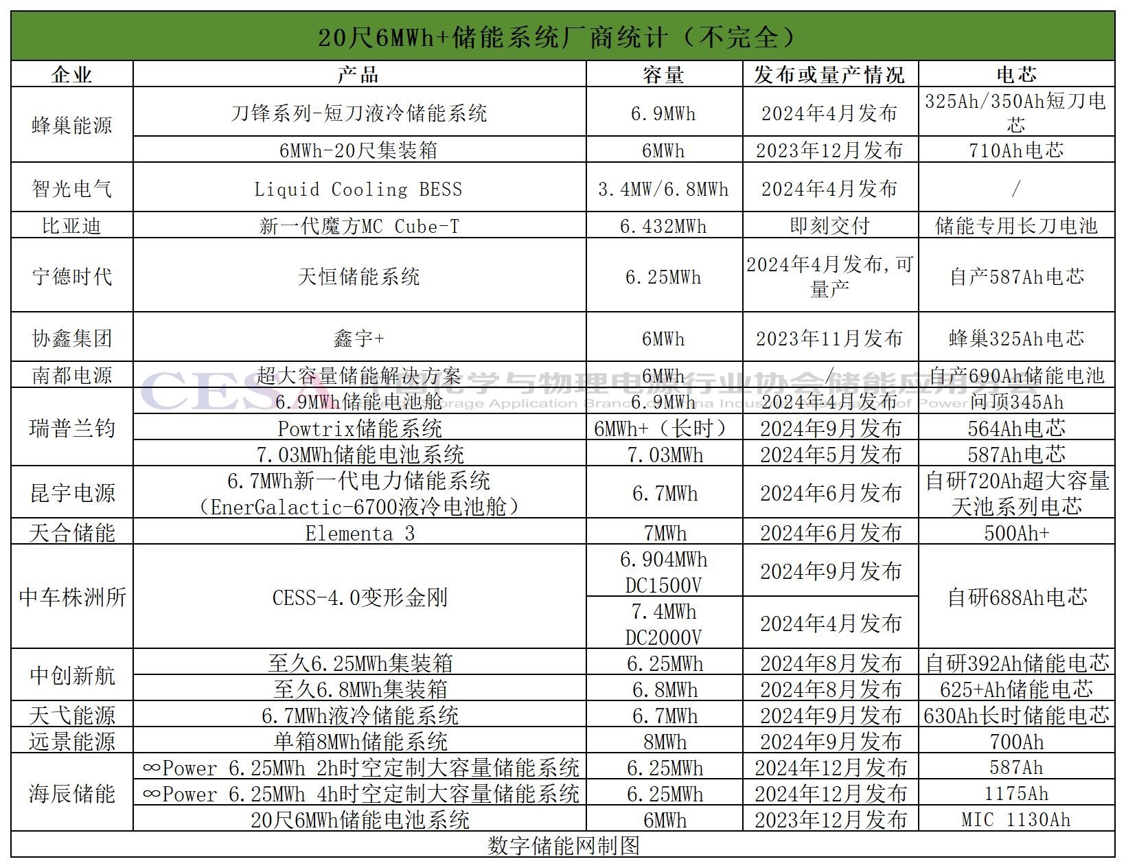 截至目前,據(jù)中國儲能網(wǎng)不完全統(tǒng)計,共有14家企業(yè)發(fā)布了21個6MWh+儲能系統(tǒng)產(chǎn)品。