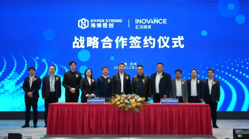海博思創(chuàng)聯(lián)合創(chuàng)始人、運營總裁舒鵬,副總裁、供應鏈負責人趙青;匯川技術(shù)能源工業(yè)SBU總裁郭立鵬,能源產(chǎn)品部總監(jiān)冷嚴冬,能源工業(yè)SBU儲能行業(yè)總經(jīng)理王曉宇等共同出席并見證本次簽約儀式。