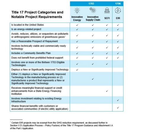 圖1 Title 17清潔能源融資計劃項目類別要求
