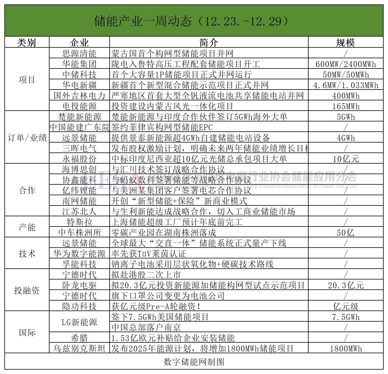 國(guó)際方面,LG新能源簽下7.5GWh美國(guó)儲(chǔ)能項(xiàng)目;烏茲別克斯坦公布2025年能源計(jì)劃,1800MWh儲(chǔ)能項(xiàng)目;高達(dá)50%!希臘啟動(dòng)1.53億歐元補(bǔ)貼給企業(yè)安裝儲(chǔ)能;Aypa Power公司計(jì)劃在美國(guó)部署4.2GWh電池儲(chǔ)能項(xiàng)目。
