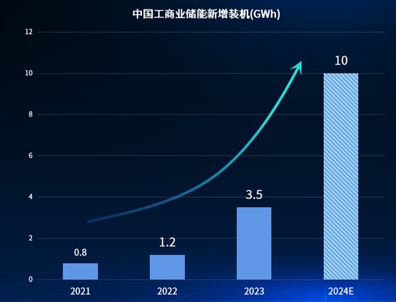 2022年工商業(yè)儲(chǔ)能新增裝機(jī)約為1.2GWh,而2023年新增裝機(jī)大幅增長(zhǎng),達(dá)3.5GWh左右,增幅超190%。