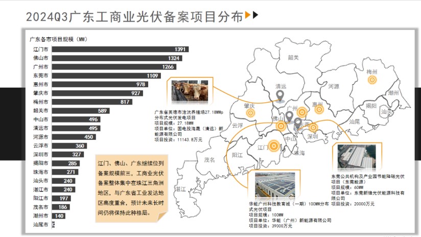 從去年到今年,工商儲(chǔ)項(xiàng)目的備案一直在以一個(gè)較快的速度增長(zhǎng),以廣東為例,今年前三季度廣東工商業(yè)光伏備案共11400個(gè)項(xiàng)目,規(guī)模合約12120MW,相較于去年同期大幅增長(zhǎng)了93.8%,截至三季度末,廣東各月備案規(guī)模均超去年同期。