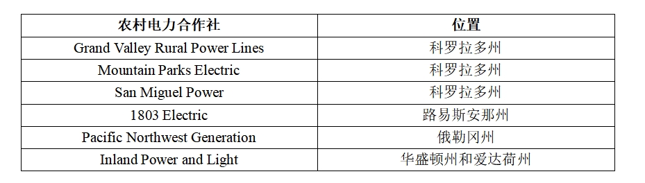 除了這10個農(nóng)村電力合作社之外,美國農(nóng)業(yè)部還選擇了6個農(nóng)村電力合作社繼續(xù)獲得《新農(nóng)業(yè)發(fā)展法案》的資助: