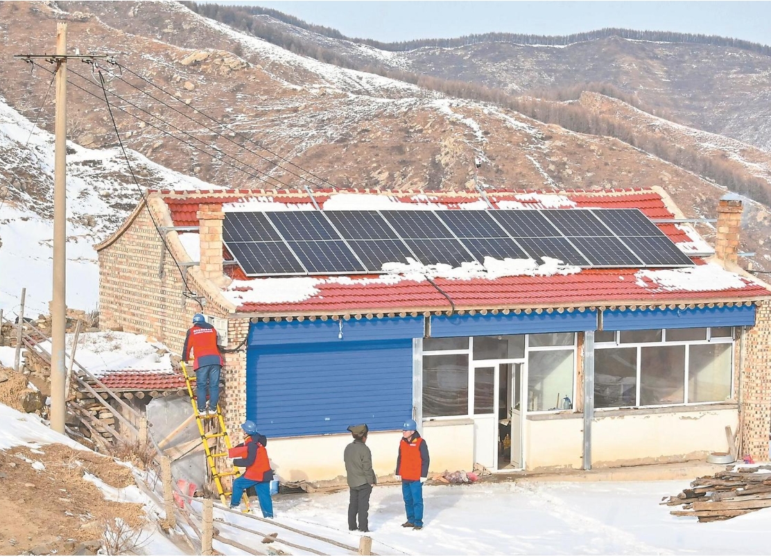 渾源縣供電公司員工在武勝家檢查“光伏+儲能”一體化系統(tǒng)。