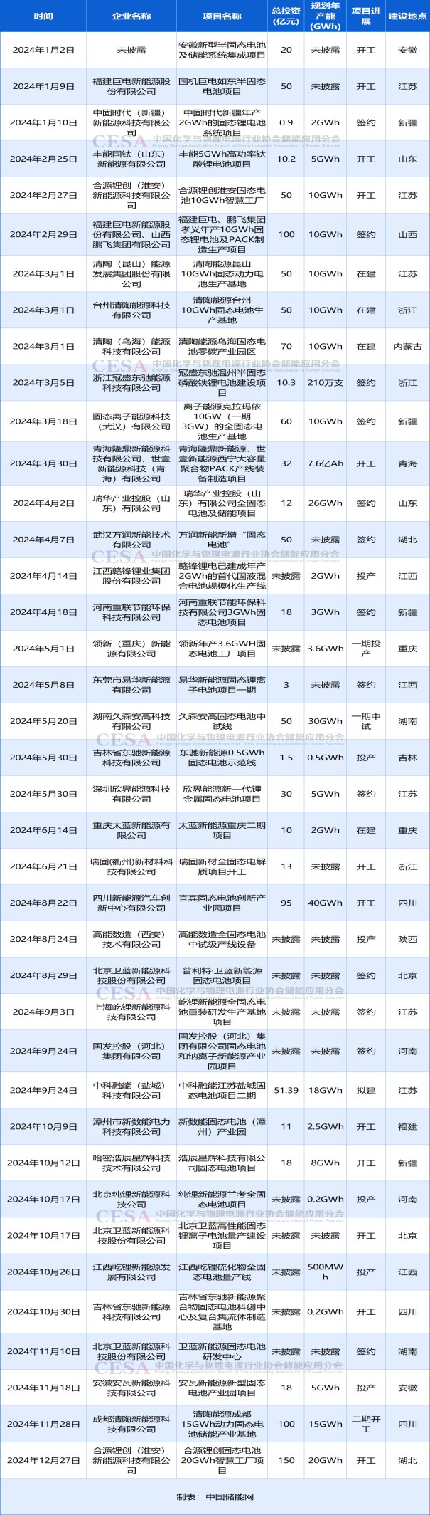 表:2024年部分半固態(tài)/固態(tài)電池儲(chǔ)能擴(kuò)產(chǎn)項(xiàng)目