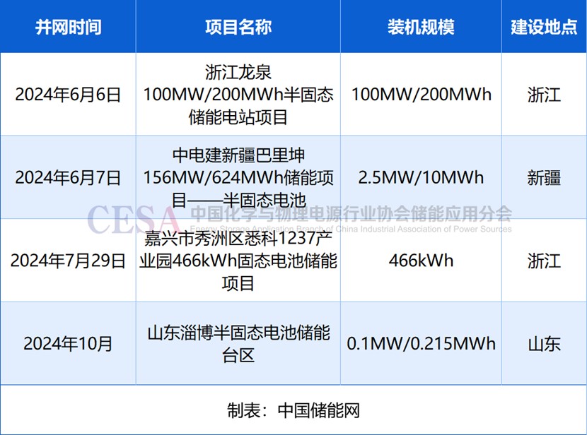 表:2024年半固態(tài)/固態(tài)電池儲(chǔ)能投運(yùn)項(xiàng)目