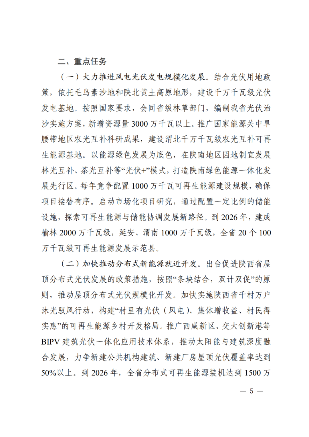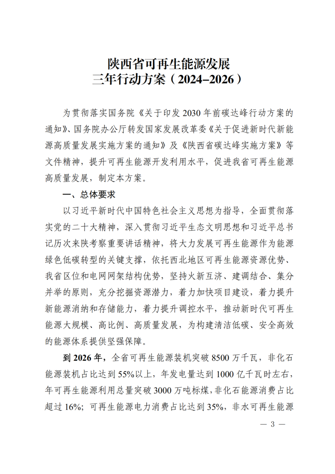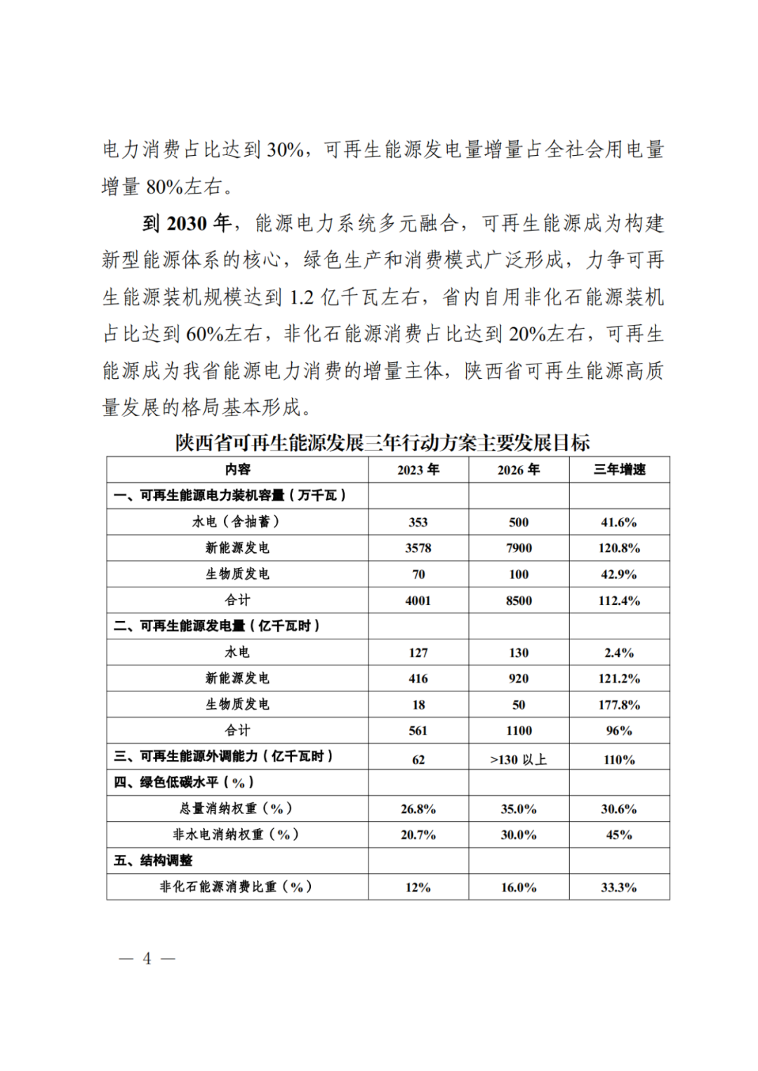中國儲(chǔ)能網(wǎng)訊:日前,陜西省發(fā)改委印發(fā)《關(guān)于印發(fā)陜西省可再生能源發(fā)展三年行動(dòng)方案(2024—2026)的通知》,初步規(guī)劃預(yù)計(jì)到2026年省內(nèi)新能源裝機(jī)規(guī)模達(dá)79GW,增速120.8%。