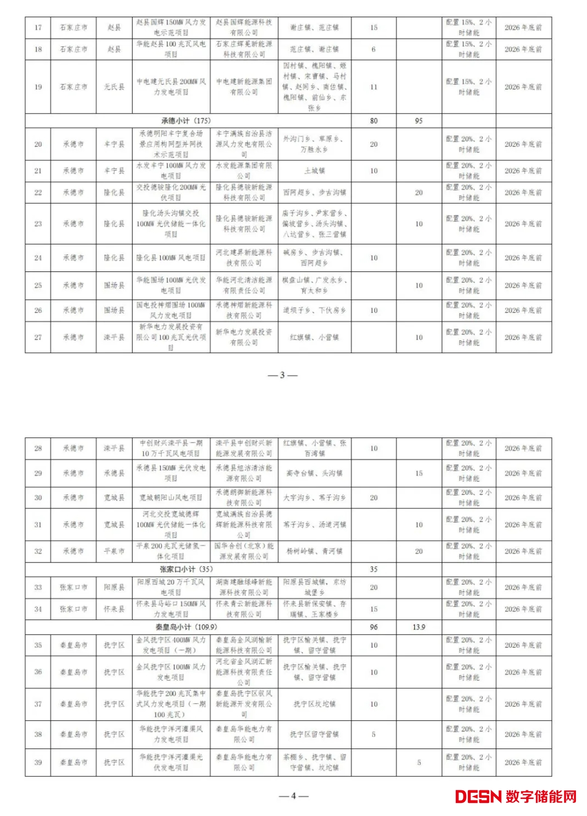 三、冀北電網(wǎng)和河北南網(wǎng)保障性并網(wǎng)項目需分別按照20%、15%比例配置儲能,時長不低于2小時,并與風(fēng)光項目同步投產(chǎn),鼓勵項目單位通過自建、共建或租賃等方式靈活配置新型儲能,項目租賃儲能容量期限等要求參照有關(guān)文件執(zhí)行。市場化項目按照項目申報類型建設(shè)(多能互補、源網(wǎng)荷儲或配置20%、4小時儲能),其中多能互補項目并網(wǎng)前需落實煤電、燃?xì)鈾C組新增調(diào)峰能力并經(jīng)電網(wǎng)公司確認(rèn),源網(wǎng)荷儲項目可按照我委制定的源網(wǎng)荷儲項目有關(guān)標(biāo)準(zhǔn)或配置20%、4小時儲能建設(shè)。