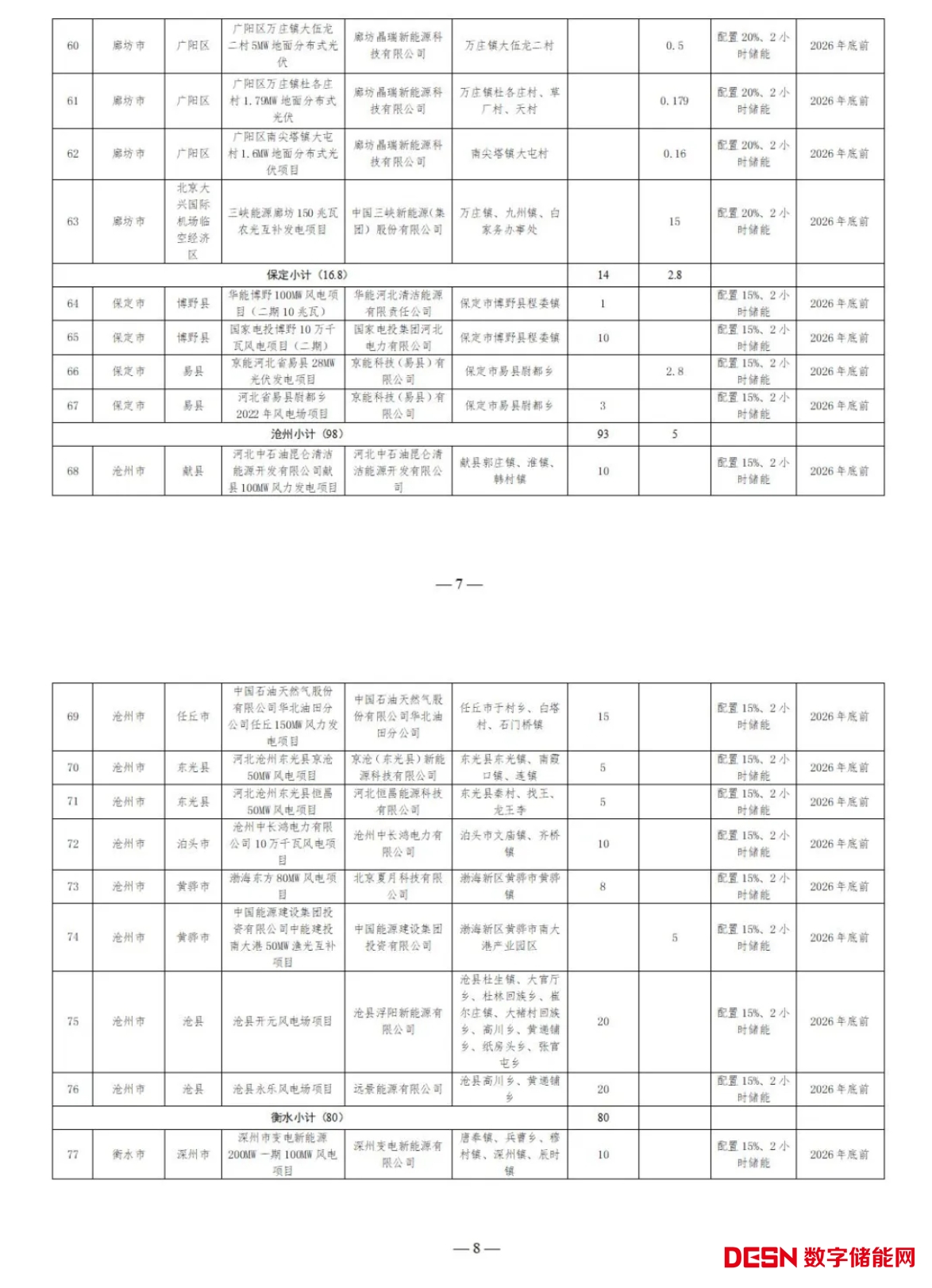 此前,7月3日,河北省發(fā)改委發(fā)布《河北省2024年風(fēng)電、光伏發(fā)電開發(fā)建設(shè)方案擬安排項目情況公示》。公示項目共189個、1784.263萬千瓦,其中保障性項目共116個、1039.298萬千瓦,市場化項目共73個、744.965萬千瓦。總配儲規(guī)模約3.22GW/9.33GWh