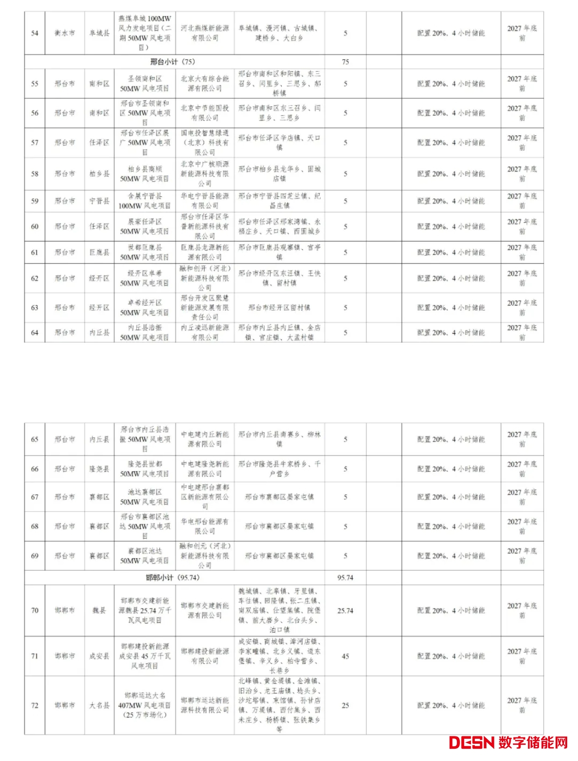 風(fēng)電、光伏市場化并網(wǎng)項目共72個、7149.65MW,預(yù)計配儲規(guī)模為1383MW/5535MWh。