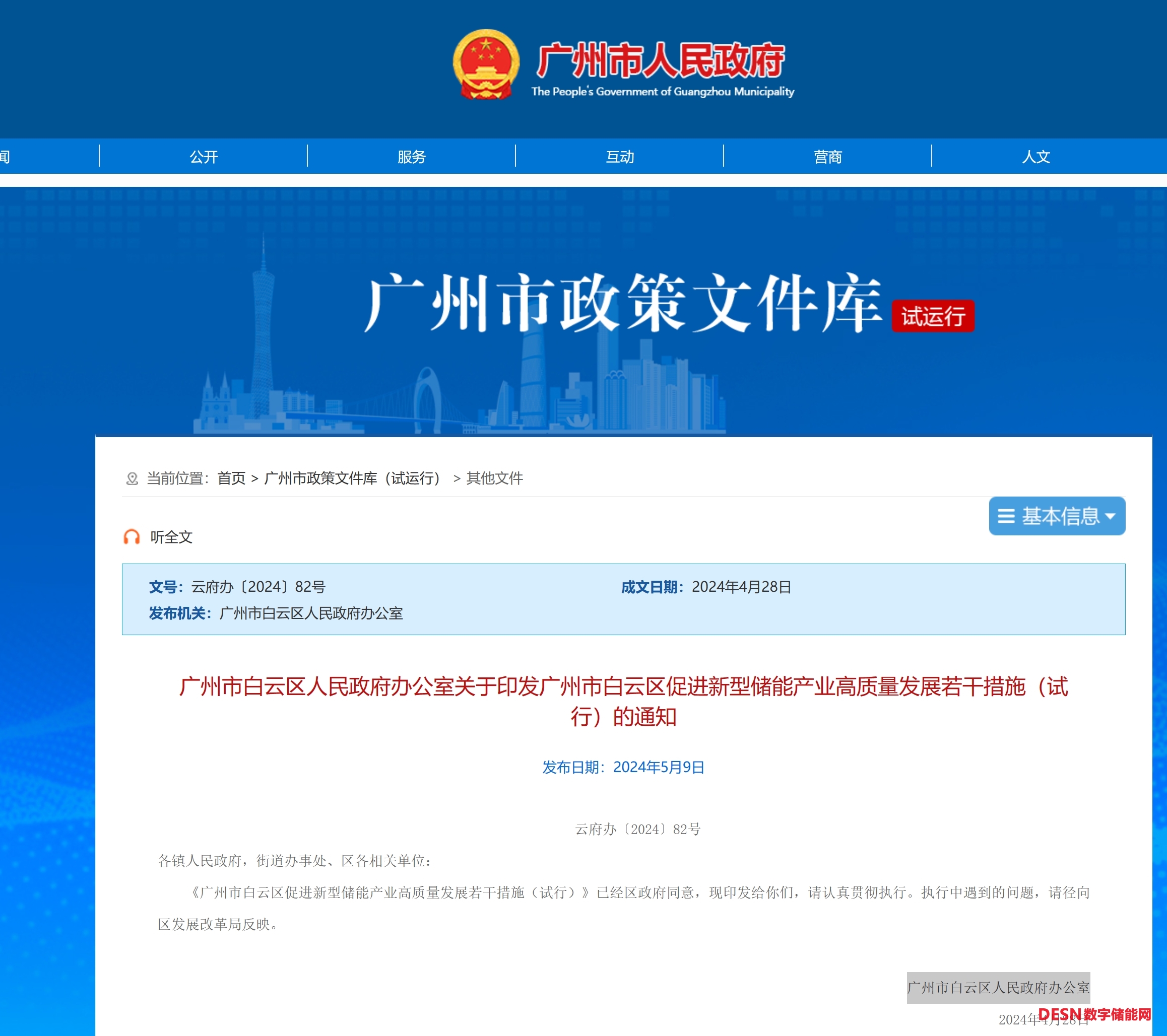 廣州市白云區(qū)促進(jìn)新型儲(chǔ)能產(chǎn)業(yè)高質(zhì)量發(fā)展若干措施(試行)