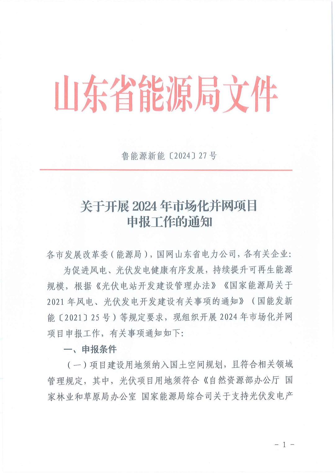 關(guān)于開展2024年市場化并網(wǎng)項(xiàng)目申報(bào)工作的通知