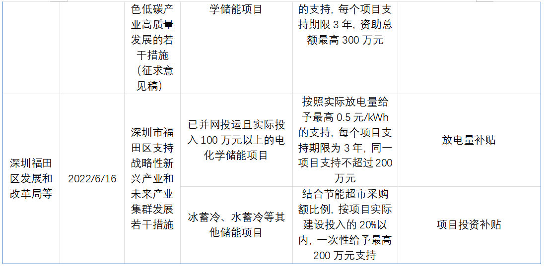 深圳市福田區(qū)發(fā)展和改革局發(fā)布的政策文件中,對高安全、高可靠、長壽命的儲能項目提供了放電量補貼。按照實際放電量給予最高0.5元/千瓦時的支持,每個項目支持期限為3年,同一項目支持不超過200萬元。