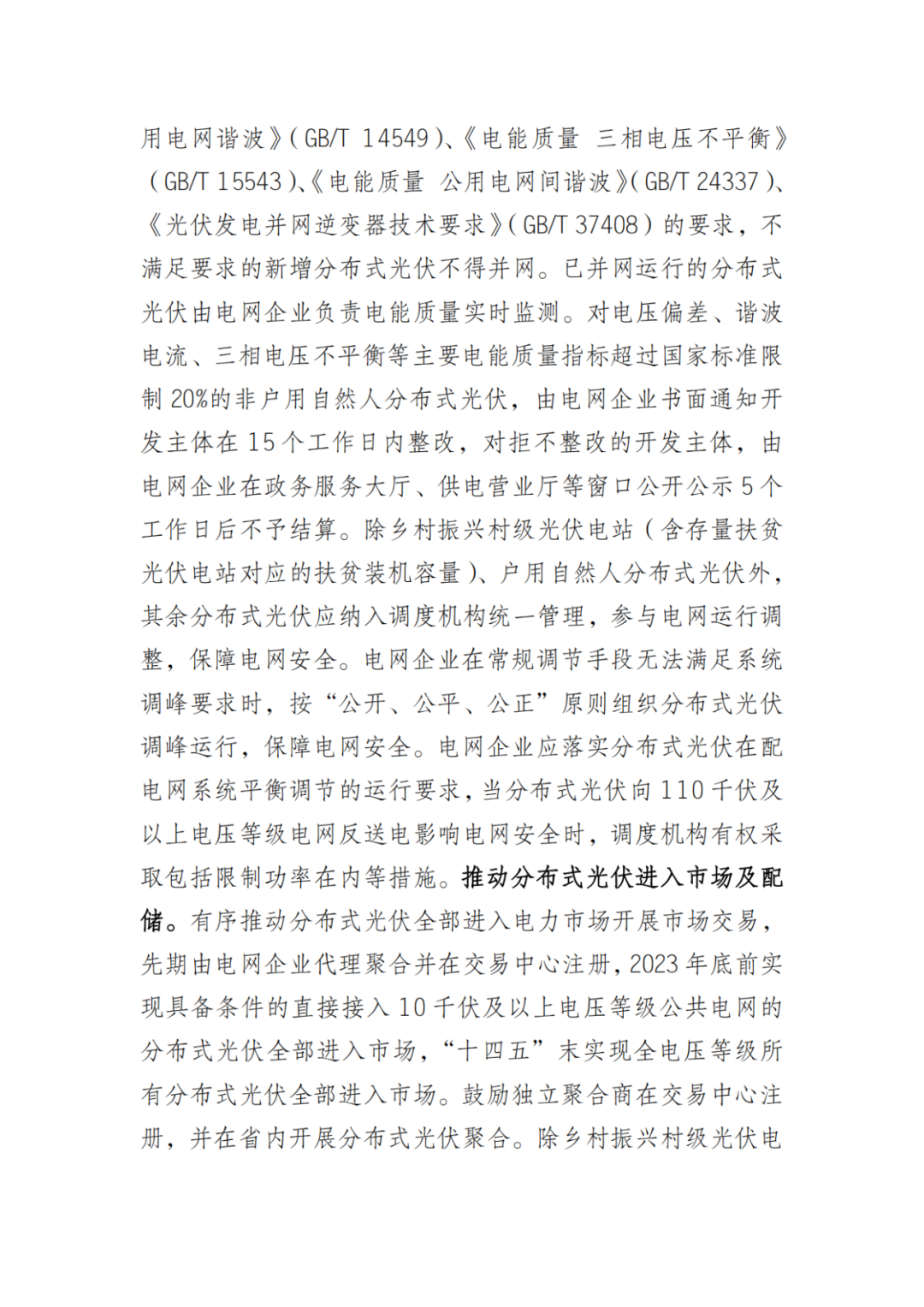 文件強(qiáng)調(diào),除鄉(xiāng)村振興村級光伏電站(含存量扶貧光伏電站對應(yīng)的扶貧裝機(jī)容量)、戶用自然人分布式光伏外,其余分布式光伏應(yīng)納入調(diào)度機(jī)構(gòu)統(tǒng)一管理,參與電網(wǎng)運(yùn)行調(diào)整,保障電網(wǎng)安全。電網(wǎng)企業(yè)在常規(guī)調(diào)節(jié)手段無法滿足系統(tǒng)調(diào)峰要求時(shí),按“公開、公平、公正”原則組織分布式光伏調(diào)峰運(yùn)行,保障電網(wǎng)安全。