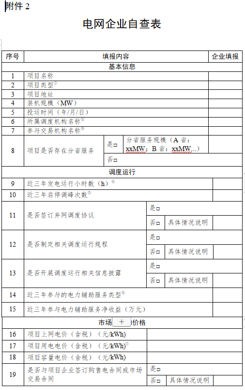 1.發(fā)電(儲能)企業(yè)自查表