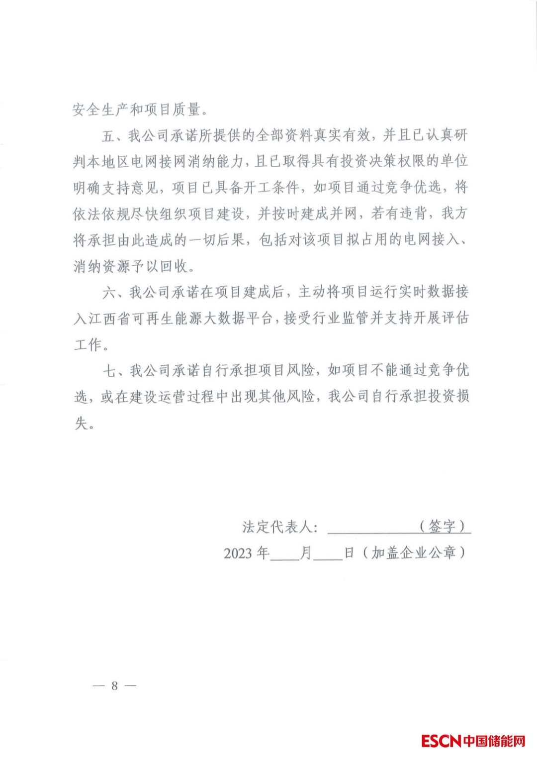 同時,要求申報企業(yè)承諾作為附件:已就申報的新能源項目對接其他調(diào)節(jié)手段提 高調(diào)節(jié)性能進行了落實,對接的具體方式為:(火電靈活性改造、 制氫等)。如自建儲能,我司承諾對儲能項目根據(jù)《江西省能源 局關(guān)于做好新型儲能項目全過程管理工作的通知》單獨備案,從嚴管理,并接受公共電網(wǎng)統(tǒng)一調(diào)度。