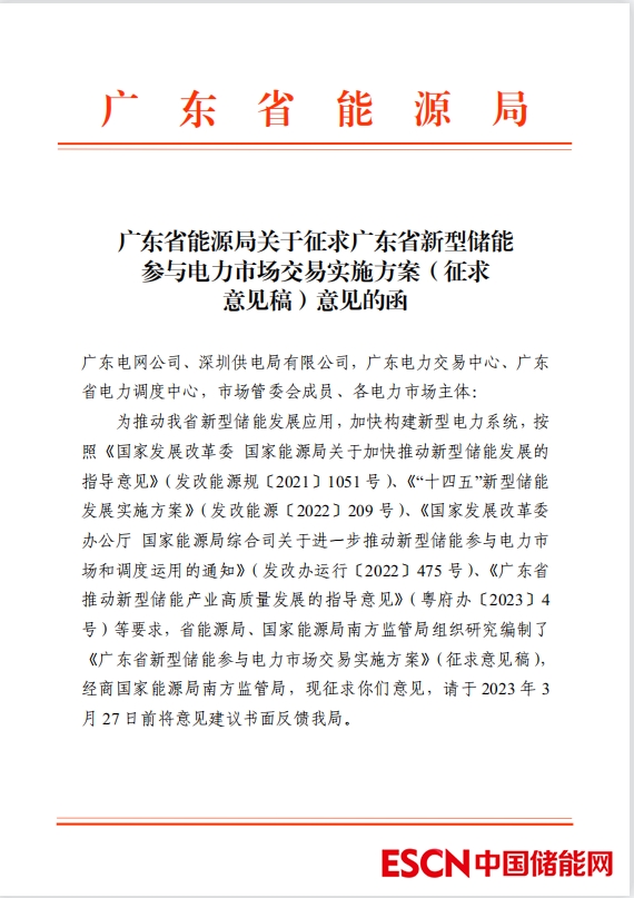 中國(guó)儲(chǔ)能網(wǎng)訊:近日,廣東省能源局發(fā)布了《關(guān)于征求廣東省新型儲(chǔ)能參與電力市場(chǎng)交易實(shí)施方案(征求意見(jiàn)稿)意見(jiàn)的函》,隨函發(fā)布了《廣東省新型儲(chǔ)能參與電力市場(chǎng)交易實(shí)施方案(征求意見(jiàn)稿)》(以下簡(jiǎn)稱(chēng)《方案》)。