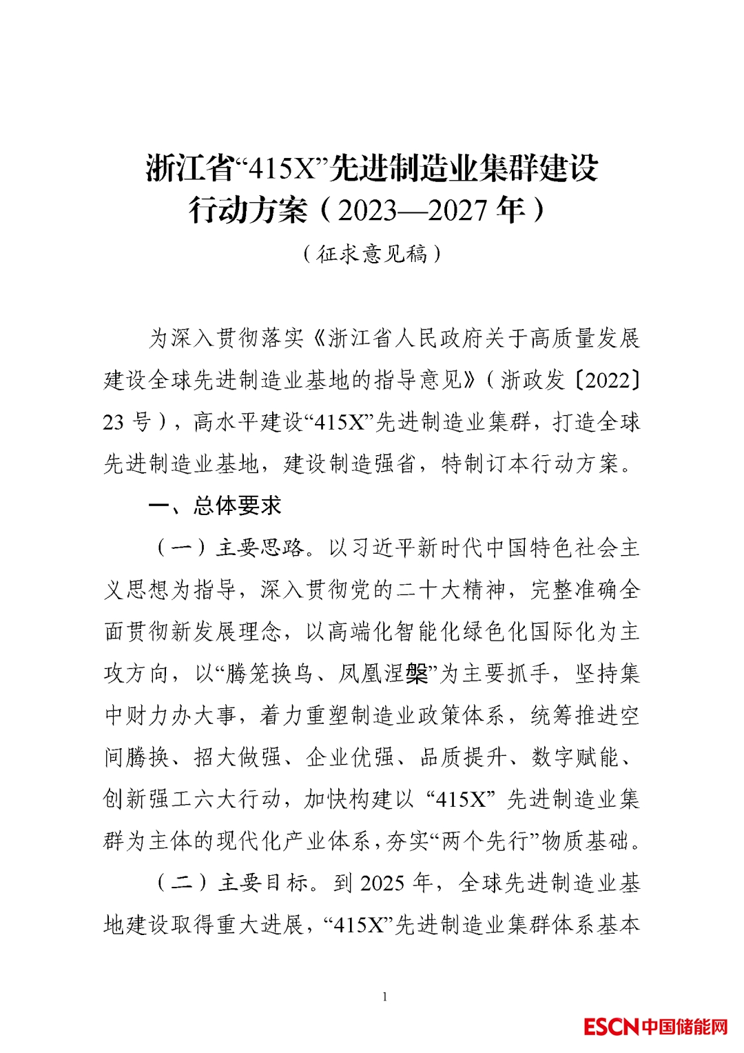 中國儲能網(wǎng)訊:日前,浙江省經(jīng)濟和信息化廳發(fā)布了“關(guān)于公開征求《浙江省“415X”先進制造業(yè)集群建設(shè)行動方案(2023-2027年)(征求意見稿)》意見建議的公告”,公告指出: