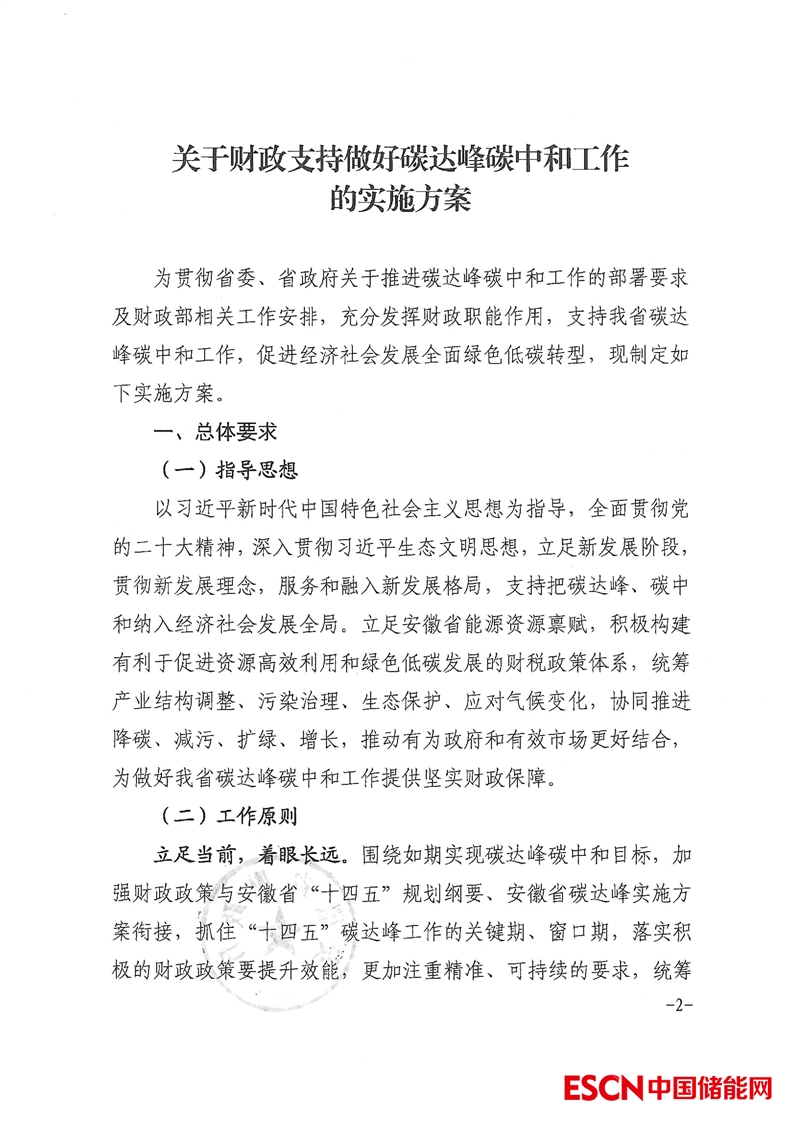 中國(guó)儲(chǔ)能網(wǎng)訊:近日,安徽省財(cái)政廳印發(fā)《關(guān)于財(cái)政支持碳達(dá)峰碳中和工作的實(shí)施方案》?!秾?shí)施方案》指出,在重點(diǎn)支持方向上,將聚焦能源清潔低碳高效利用、重點(diǎn)行業(yè)領(lǐng)域綠色低碳轉(zhuǎn)型、綠色低碳科技創(chuàng)新體系建設(shè)、綠色低碳生活和資源節(jié)約利用、碳匯能力鞏固提升、健全綠色低碳市場(chǎng)體系等六個(gè)方面。