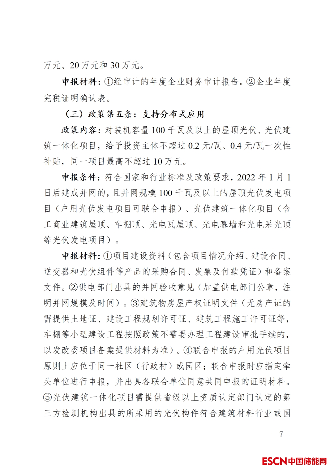 對(duì)裝機(jī)容量100千瓦及以上的屋頂光伏、光伏建筑一體化項(xiàng)目,給予投資主體不超過(guò)0.2元/瓦、0.4元/瓦一次性補(bǔ)貼,同一項(xiàng)目最高不超過(guò)10萬(wàn)元。