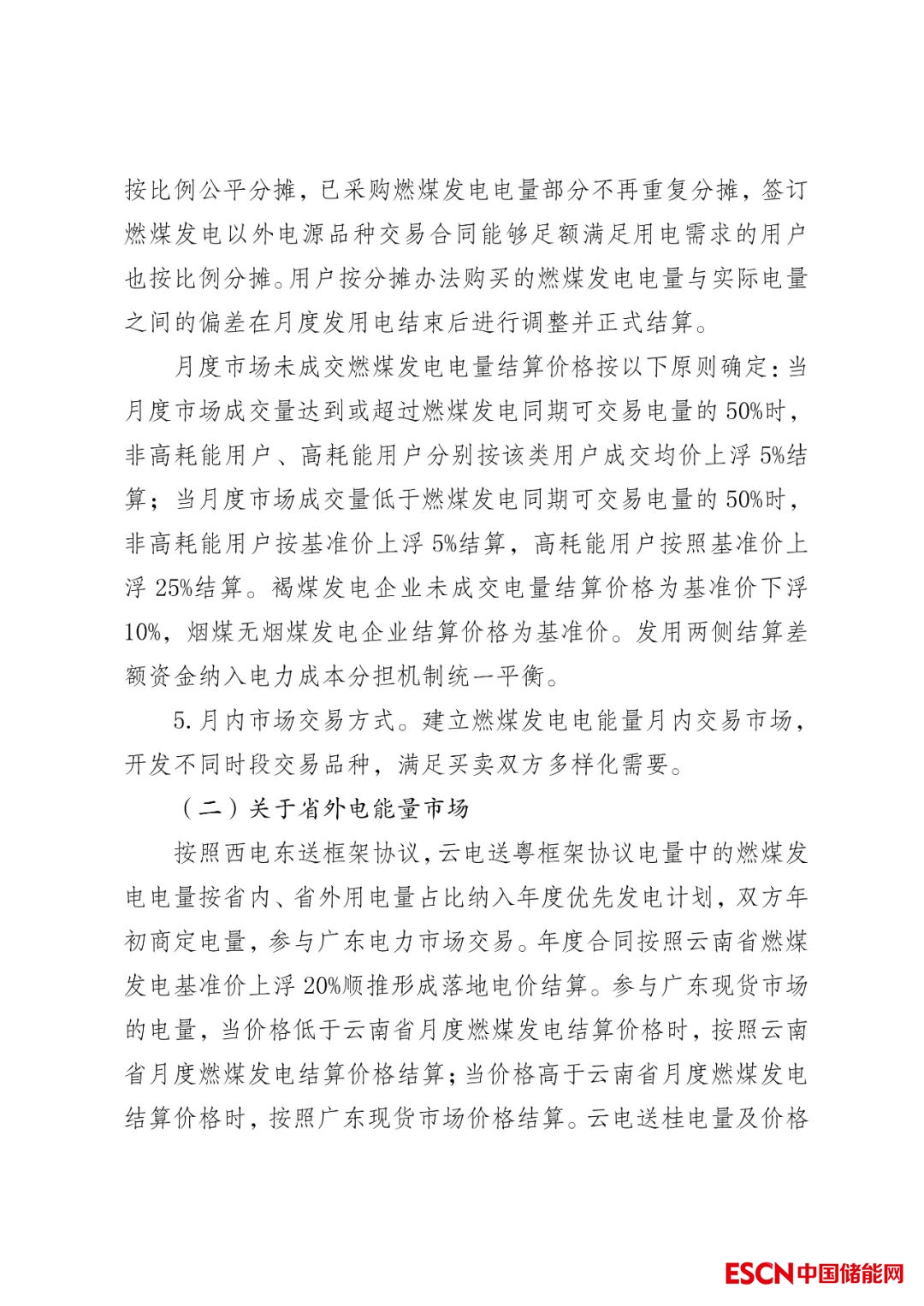 對(duì)于云南省外電能量市場(chǎng),方案明確,按照西電東送框架協(xié)議,云電送粵框架協(xié)議電量中的燃煤發(fā)電電量按省內(nèi)、省外用電量占比納入年度優(yōu)先發(fā)電計(jì)劃,雙方年初商定電量,參與廣東電力市場(chǎng)交易。年度合同按照云南省燃煤發(fā)電基準(zhǔn)價(jià)上浮20%順推形成落地電價(jià)結(jié)算。參與廣東現(xiàn)貨市場(chǎng)的電量,當(dāng)價(jià)格低于云南省月度燃煤發(fā)電結(jié)算價(jià)格時(shí),按照云南省月度燃煤發(fā)電結(jié)算價(jià)格結(jié)算;當(dāng)價(jià)格高于云南省月度燃煤發(fā)電結(jié)算價(jià)格時(shí),按照廣東現(xiàn)貨市場(chǎng)價(jià)格結(jié)算。云電送桂電量及價(jià)格形成機(jī)制參照?qǐng)?zhí)行。